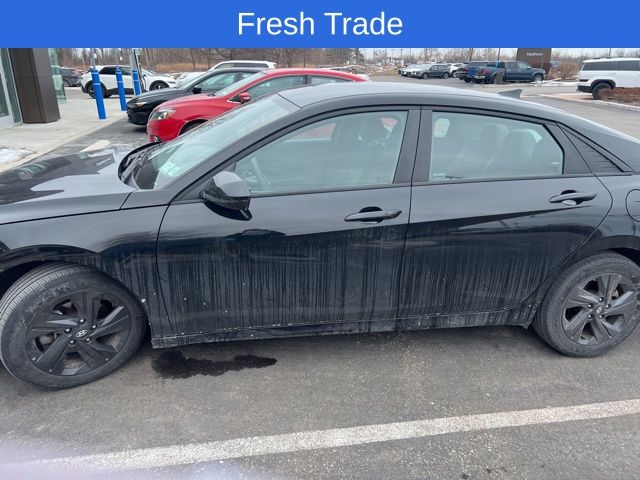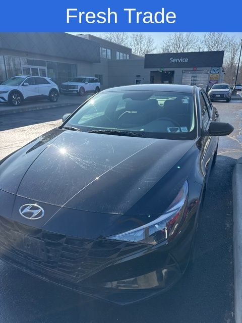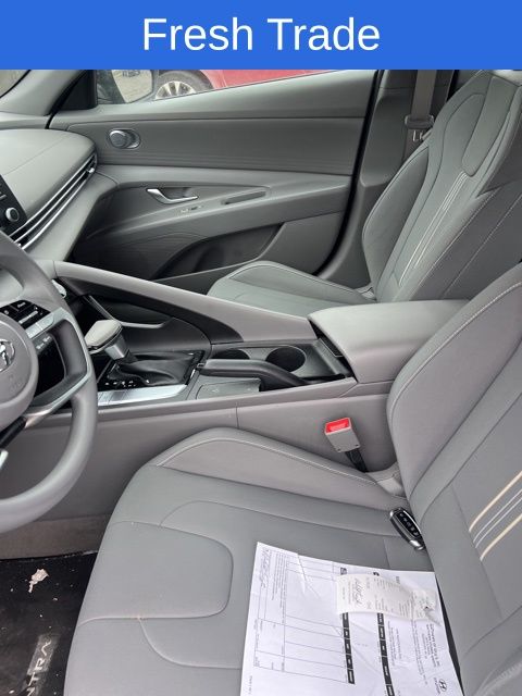 Certified. Onyx Black 2023 Hyundai Elantra SEL FWD CVT I4 16" x 6.5J Alloy Wheels, 4-Wheel Disc Brakes, 6 Speakers, ABS brakes, Air Conditioning, Alloy wheels, AM/FM radio: SiriusXM, Apple CarPlay & Android Auto, Auto High-beam Headlights, Automatic temperature control, Brake assist, Bumpers: body-color, Cargo Block, Cargo Net, Cargo Package, Carpeted Floor Mats, Cloth Seat Trim, Delay-off headlights, Driver door bin, Driver vanity mirror, Dual front impact airbags, Dual front side impact airbags, Electronic Stability Control, Emergency communication system: Blue Link Connected Car Service (3-year complimentary subscription), Exterior Parking Camera Rear, First Aid Kit, Front anti-roll bar, Front Bucket Seats, Front Center Armrest, Front dual zone A/C, Front reading lights, Front wheel independent suspension, Fully automatic headlights, Illuminated entry, Low tire pressure warning, Occupant sensing airbag, Option Group 01, Outside temperature display, Overhead airbag, Overhead console, Panic alarm, Passenger door bin, Passenger vanity mirror, Power door mirrors, Power steering, Power windows, Radio: AM/FM/HD/SiriusXM Display Audio, Rear window defroster, Remote keyless entry, Reversible Cargo Tray, Security system, Speed control, Speed-sensing steering, Steering wheel mounted audio controls, Tachometer, Telescoping steering wheel, Tilt steering wheel, Traction control, Trip computer, Variably intermittent wipers.