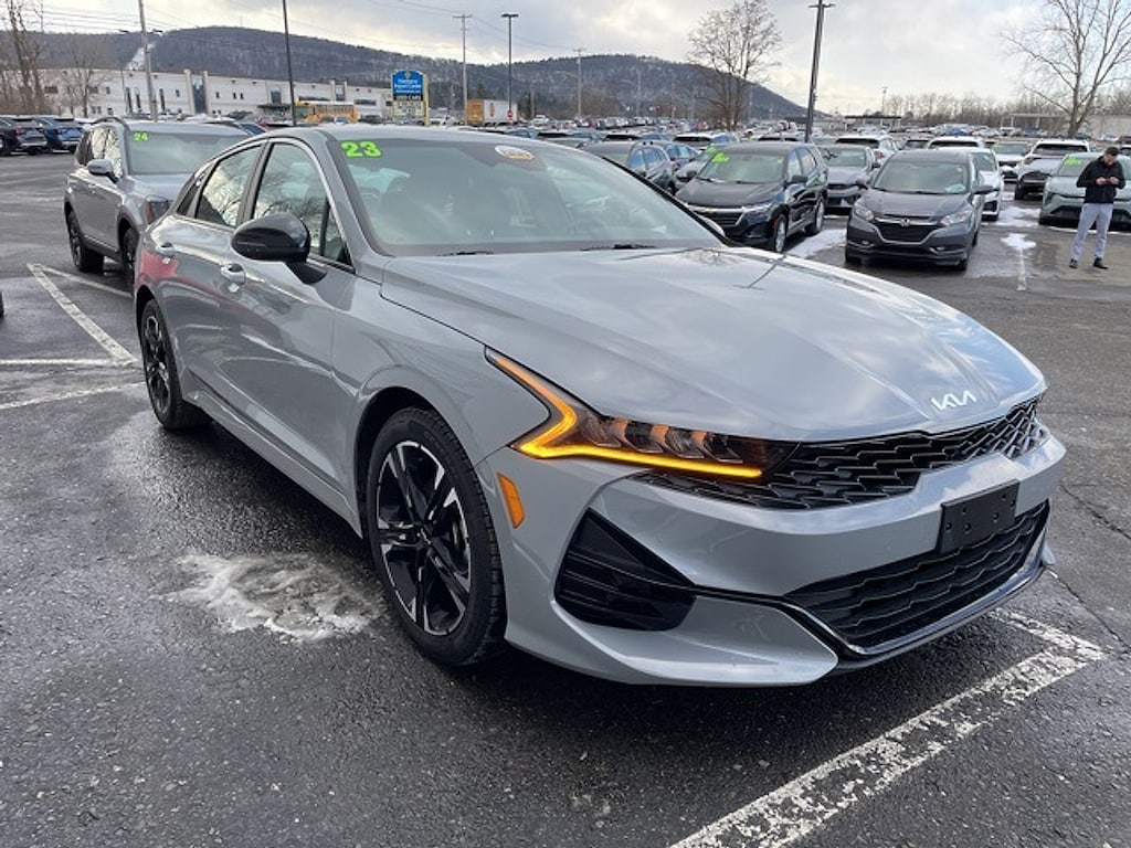 "Matthews Import Center promises each customer a thorough and confident 120-point inspection on our used inventory guaranteeing a relaxing and peace-of-mind experience. We are located behind Lowes in Vestal NY. Or call us at (607) 729 - 6261Matthews Import Center3013 Old Vestal RoadVestal NY 13850. Certified. Wolf Gray 2023 Kia GT-Line K5 FWD 8-Speed Automatic 1.6L I4 DGI Turbocharged DOHC 16V LEV3-ULEV70 180hpOdometer is 12257 miles below market average! 27/37 City/Highway MPGKia Certified Pre-Owned Details: * Includes Rental Car and Trip Interruption Reimbursement. 3 month Sirius trial subscription * 165 Point Inspection * Roadside Assistance * Limited Warranty: 12 Month/12000 Mile (whichever comes first) ""Platinum Coverage""from certified purchase date * Transferable Warranty * Vehicle History * Powertrain Limited Warranty: 120 Month/100000 Mile (whichever comes first) from original in-service date * Warranty Deductible: $50"