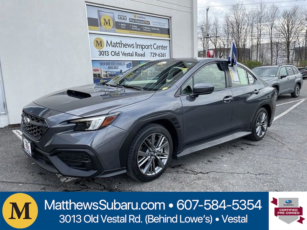 Certified. Magnetite Gray Metallic 2023 Subaru WRX AWD 6-Speed Manual 2.4L DOHC19/26 City/Highway MPGSubaru Certified Pre-Owned Details: * Powertrain Limited Warranty: 84 Month/100000 Mile (whichever comes first) from original in-service date * Transferable Warranty * SiriusXM 3-Month trial subscription $500 Owner Loyalty coupon & 1 year trial subscription to STARLINK * Warranty Deductible: $0 * Vehicle History * 152 Point Inspection * Roadside AssistanceMatthews Import Center promises each customer a thorough and confident 120-point inspection on our used inventory guaranteeing a relaxing and peace-of-mind experience. We are located behind Lowes in Vestal NY. Or call us at (607) 729 - 6261 Matthews Import Center 3013 Old Vestal Road Vestal NY 13850.Odometer is 27836 miles below market average!